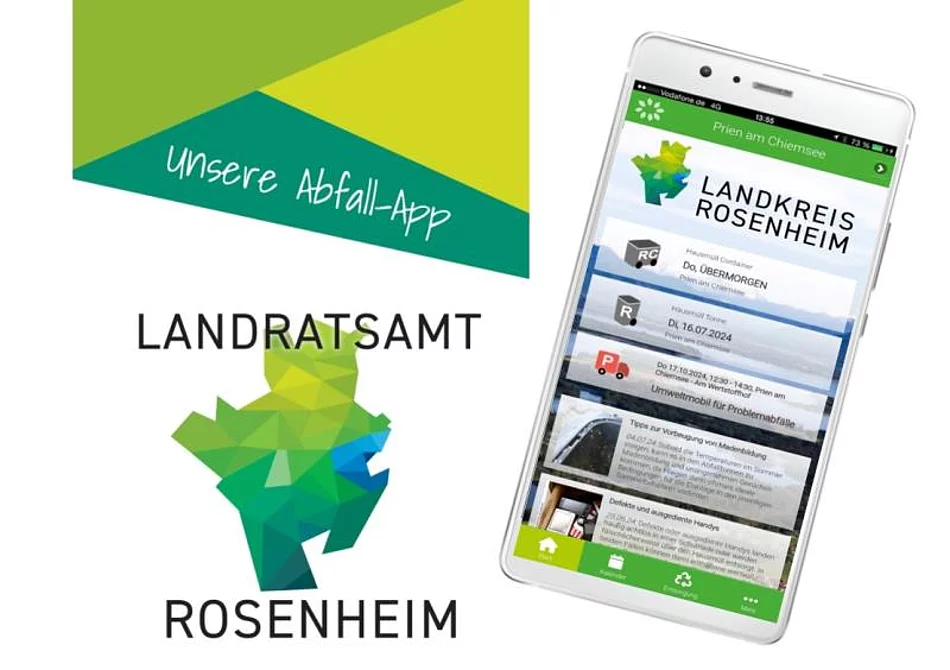 Die Abfall-App des Landkreises Rosenheim in neuem Design.