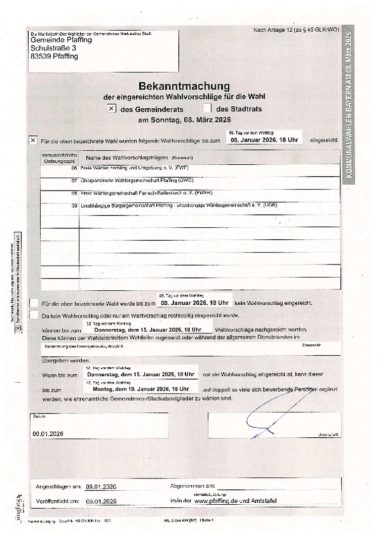 Bekanntmachung der Wahlvorschläge
