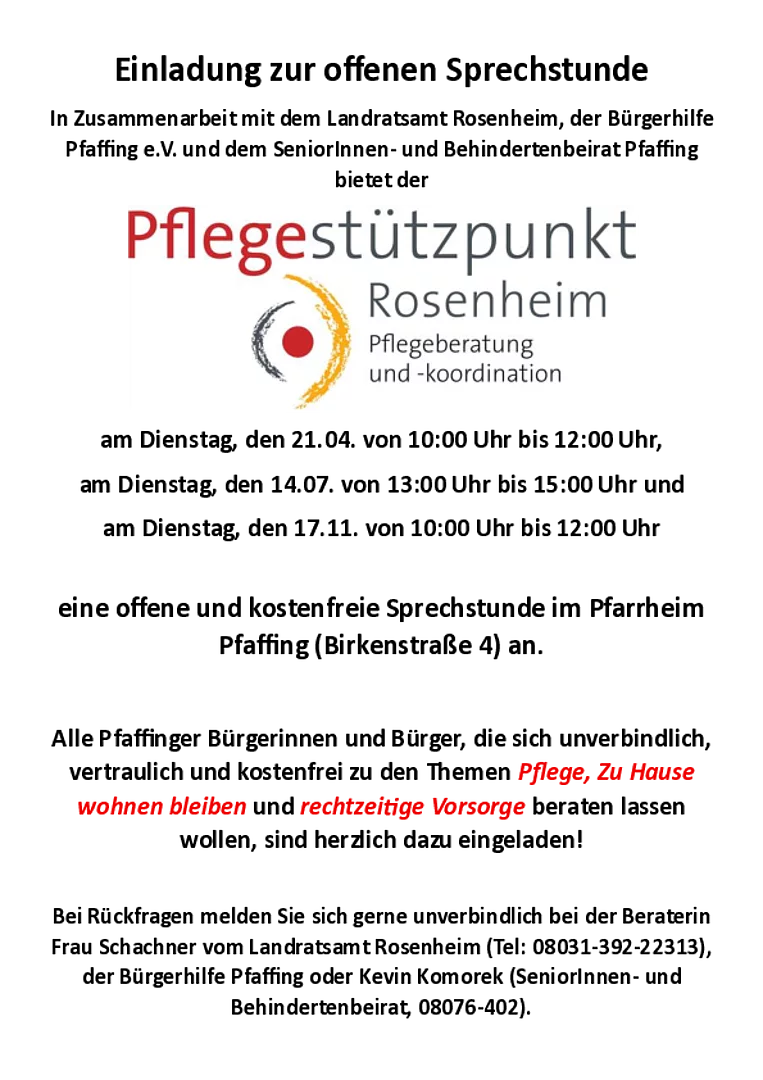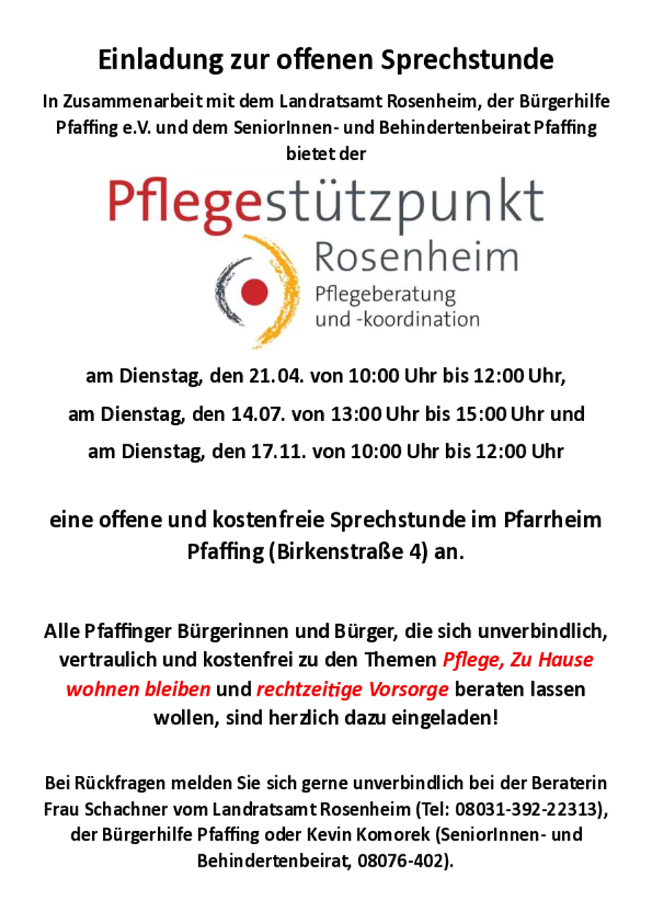 Termine offene Sprechstunde Pflegestützpunkt Rosenheim